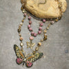 Wrap your wrist in a garden of elegance with the blooming blue cuff. This bracelet features light blue mesh fabric, exquisitely embroidered with delicate floral design in white and periwinkle, set in a wide gold cuff. * Handmade in India * Vintage embroidered fabric bracelet * Light blue and white floral cuff * Measures: 2" wide * Materials: Gold Tone Metal, Fabric
