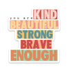 Stickers are everywhere! Add personality to your laptop, car, water bottle, tumblers, phone cases, notebooks, and more! Any hard surface will do. All of our stickers are made of quality heavyweight vinyl material with a matte finish. They are weather, water, and scratch-resistant. Safe to put in the dishwasher and use indoors OR outdoors. They are super easy peel and stick and are long lasting. All colors are digital representation, so they may vary slightly from what you see on your computer monitor.